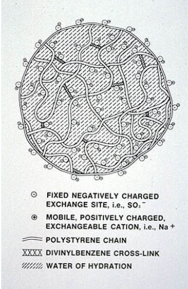 圖4、水合強酸陽離子交換劑的示意圖。(由羅門哈斯公司提供。)